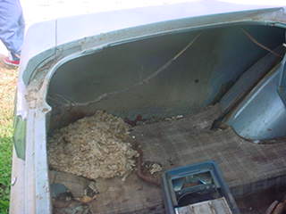 Aside from surface rust, the trunk is in solid shape. Mice seem to have built a Motel in here at sometime.