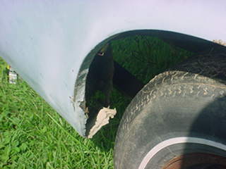 This corner must have been parked next to a Chevy. Guess a new fender isnt out of the question. |